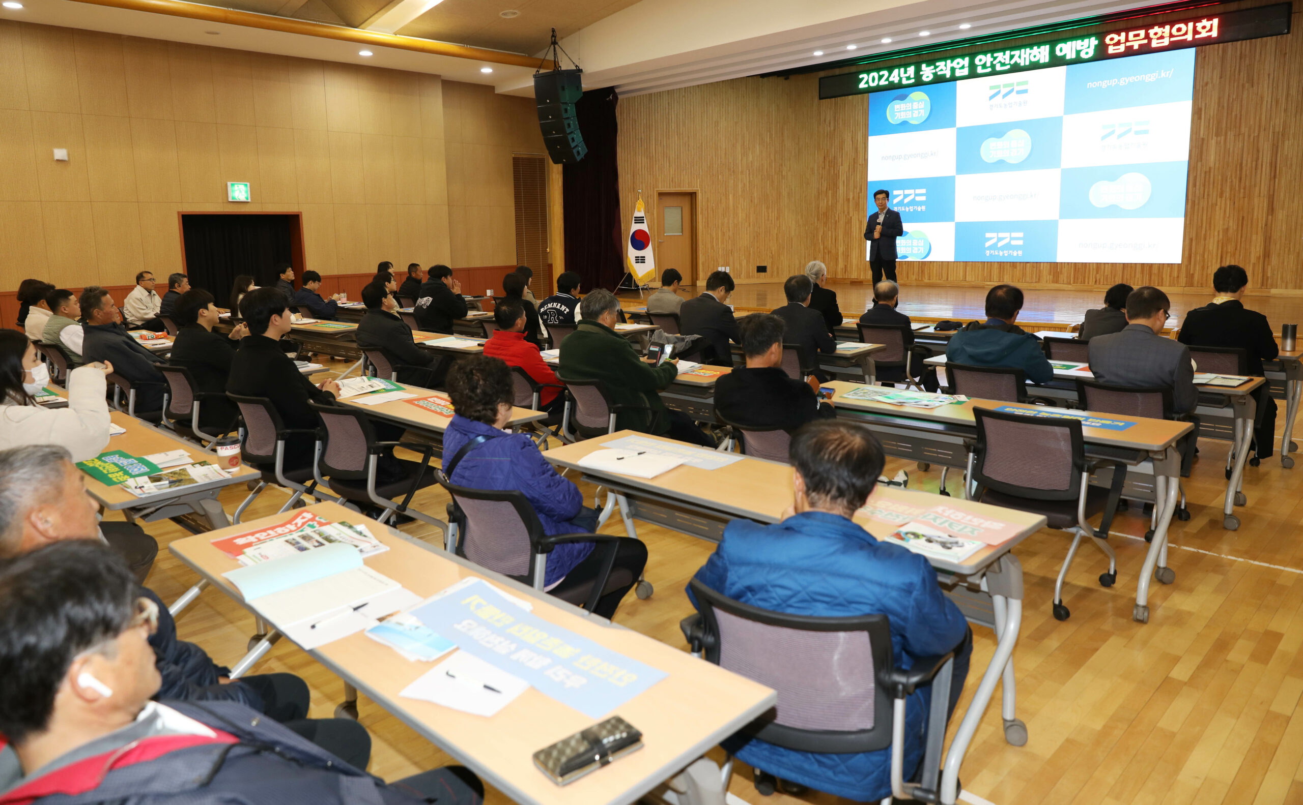 경기도농업기술원은 29일 농작업 안전보건 전문위원, 시군 작목별 연구회 대표 농업인 등 50여 명이 참석한 가운데 농업인의 농작업 안전재해 예방을 위한 ‘농작업 안전재해 예방 업무협의회’를 개최했다.
